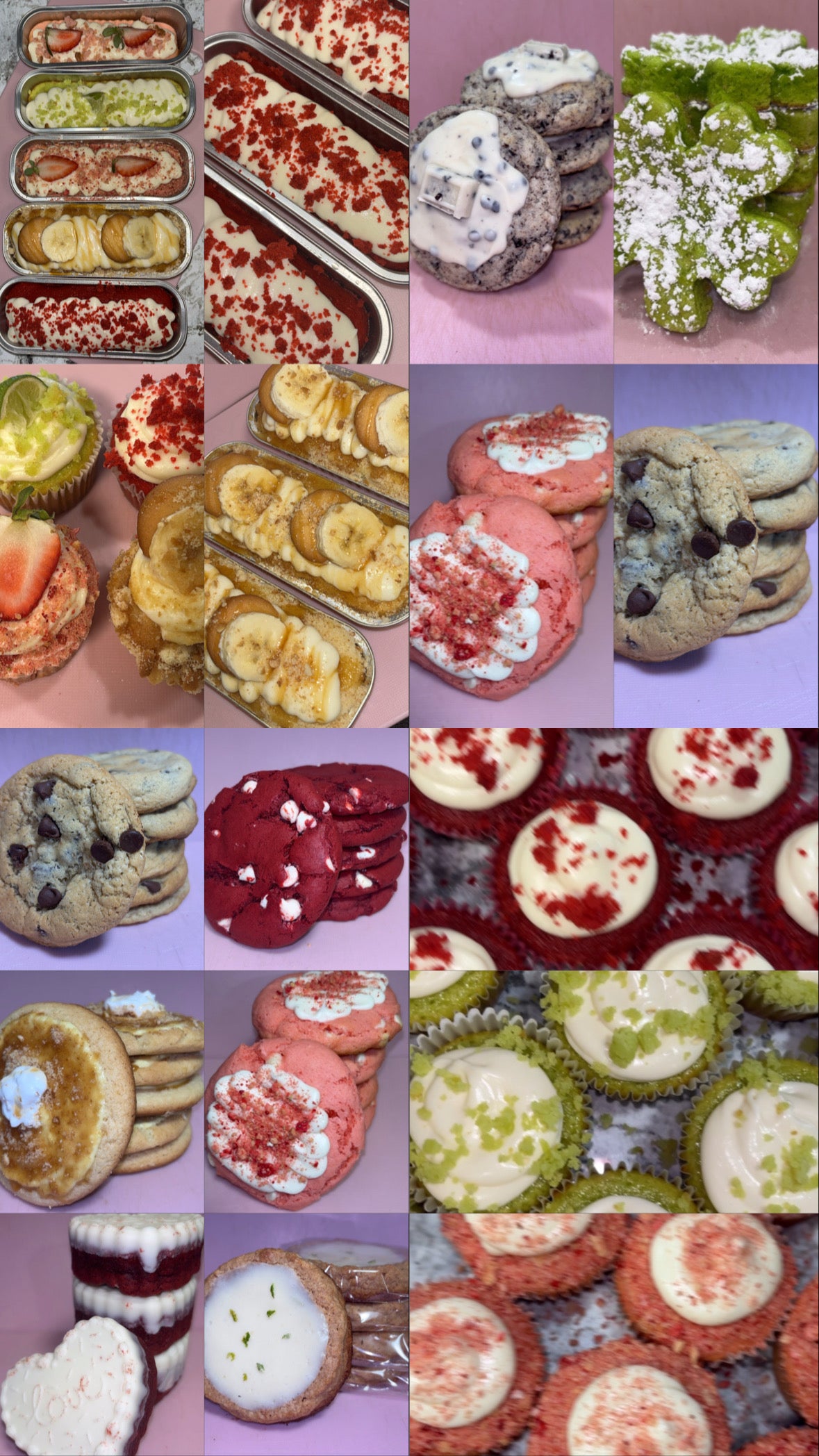 You can choose 5 items from a wide variety of mini loaf cakes , cookies and/or banana pudding bowls. Text 470-417-7011 to provide your 5 items.